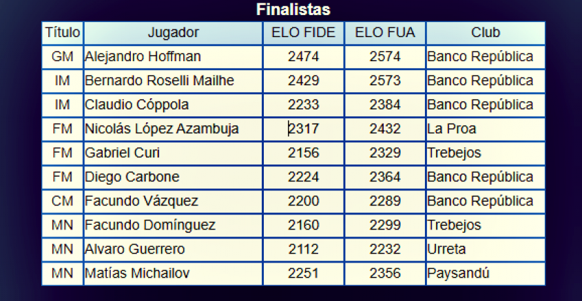 Imágen listado finalistas Gentileza blog Ajedrez Uruguay