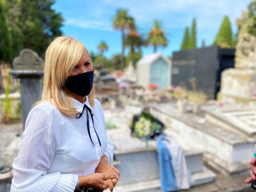 La jerarca asistió al cementerio del Buceo, donde dejó una ofrenda floral en la tumba del líder blanco.