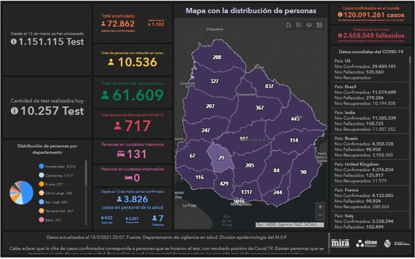 Hasta ahora Uruguay ha registrado 72.862 casos positivos de Coronavirus en todo el territorio nacional, de los cuales 61 mil 609 se recuperaron.