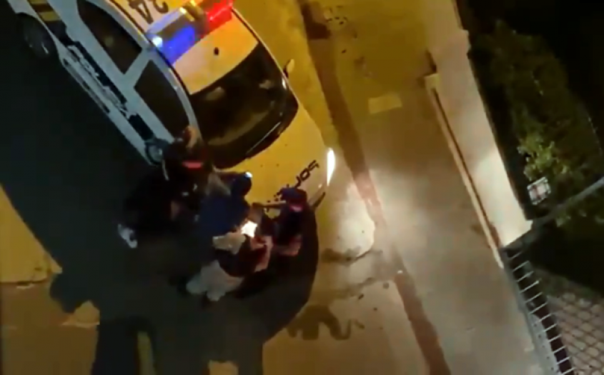 En las imágenes los policías le exigen a uno de los hombres que borre contenido de su celular.