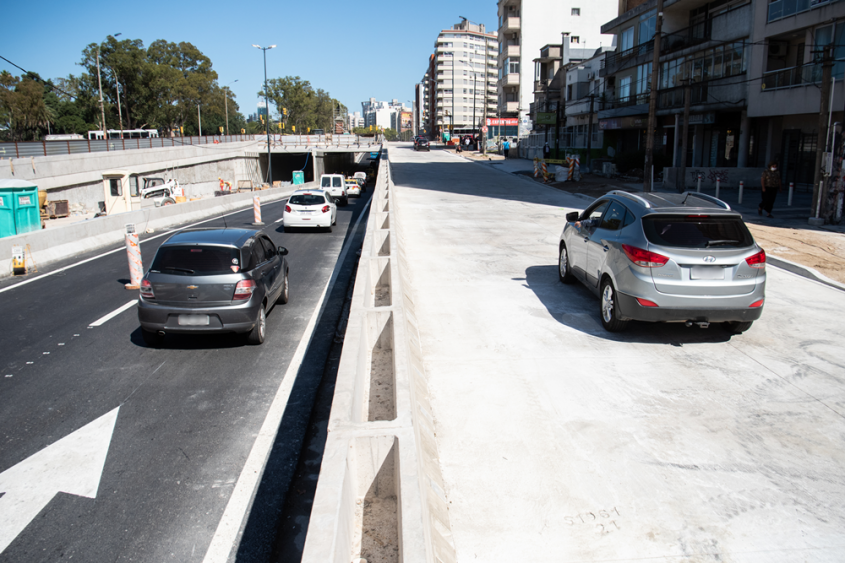 Por avenida Italia a nivel, hacia el Centro, los pavimentos exteriores que quedaron finalizados son los que se extienden en el tramo entre la calle Brito Foresti y la avenida Centenario.