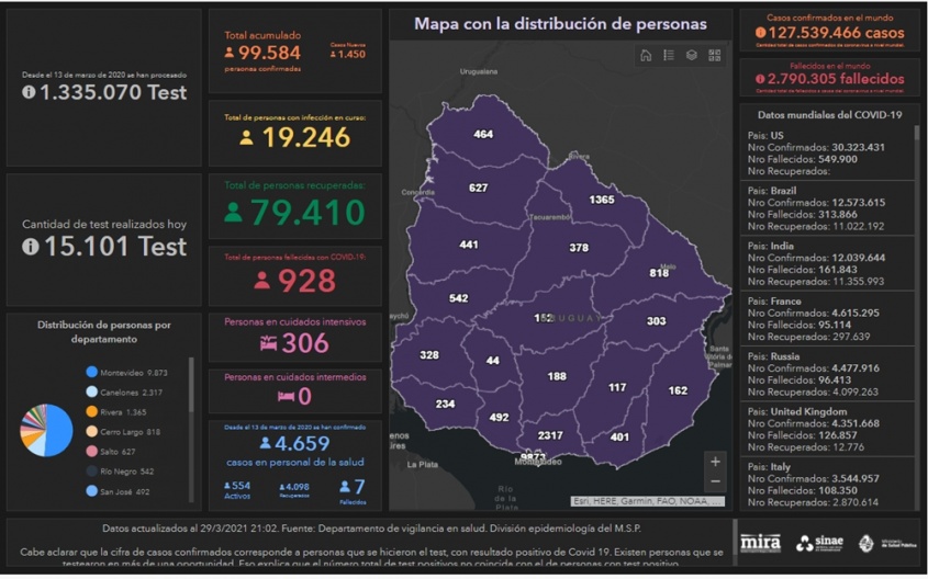 Informó el Ministerio de Salud Pública que se realizaron 15.101 análisis y se detectaron 1.450 nuevos casos de Coronavirus COVID-19, aunque se incluyeron 728 casos reportados fuera de fecha por los laboratorios.