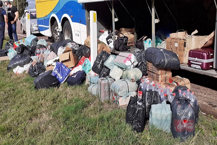 En la bodega del ómnibus fueron ubicados 274 kilos de azúcar, 54 kilos de arroz, 35 kilos de yerba, 35 kilos de sal, 24 kilos de cocoa, 24 potes de manteca, 20 paquetes de harina de trigo, 13 kilos de porotos, 12 kilos de mayonesa, 10 kilos de lentejas, 8 kilos de fideos, cinco salsas de extracto de tomate, 40 paquetes de chizitos, 40 paquetes de papas chips, 50 paquete de maní para pop y seis latas de café.