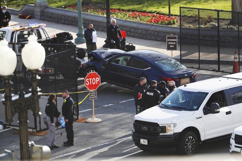 Según explicó la policía, un sujeto embistió su vehículo contra una barrera de seguridad junto al Capitolio, salió del vehículo con un cuchillo en la mano y corrió a atacar a los dos agentes.