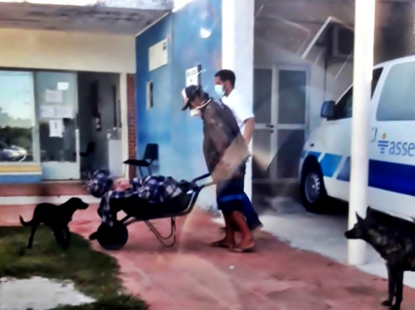 EDirector de RAP #CerroLargo ordenó investigación administrativa tras viralizarse imágenes de un #paciente en grave estado de salud trasladado en carretilla a puerta de Policlínica de #Noblia. Había intervenido fiscalía ya que el día anterior el hombre se negó a ser trasladado. pic.twitter.com/2pdDio2wAh