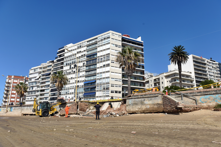 En el mes de marzo trabajaron en la recuperación de un muro que bordea a la rambla República del Perú, a la altura de la plaza Gomensoro en el barrio Pocitos, que fue afectado por fuertes vientos y marejada.