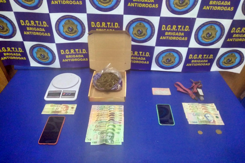 En el interior de la camioneta encontraron: una bolsa conteniendo sustancia vegetal (75,57 gr), dos teléfonos celulares, una balanza de precisión, $ 1710 pesos uruguayos, $ 5506 pesos uruguayos y $ 1000 pesos uruguayos (posiblemente apócrifos).