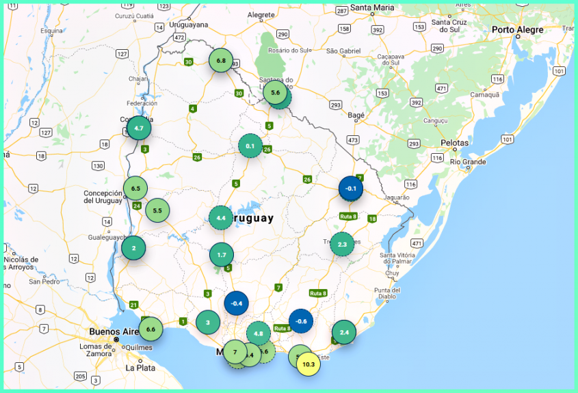 La mínima a nivel país se registró en la ciudad de Minas con 6 décima de grado por debajo del cero.