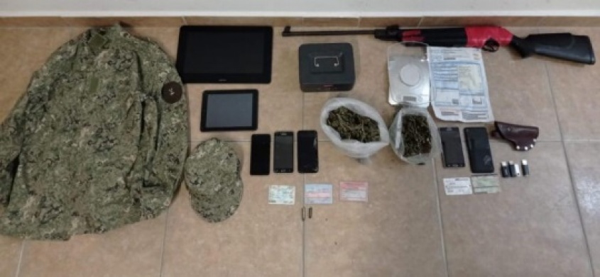 A su vez, en la vivienda ubicaron 257 gramos de marihuana en cogollos, una balanza, una funda de cuero para revolver (canana), un uniforme militar, una ganzúa, una chumbera y cartuchos de calibre 38.