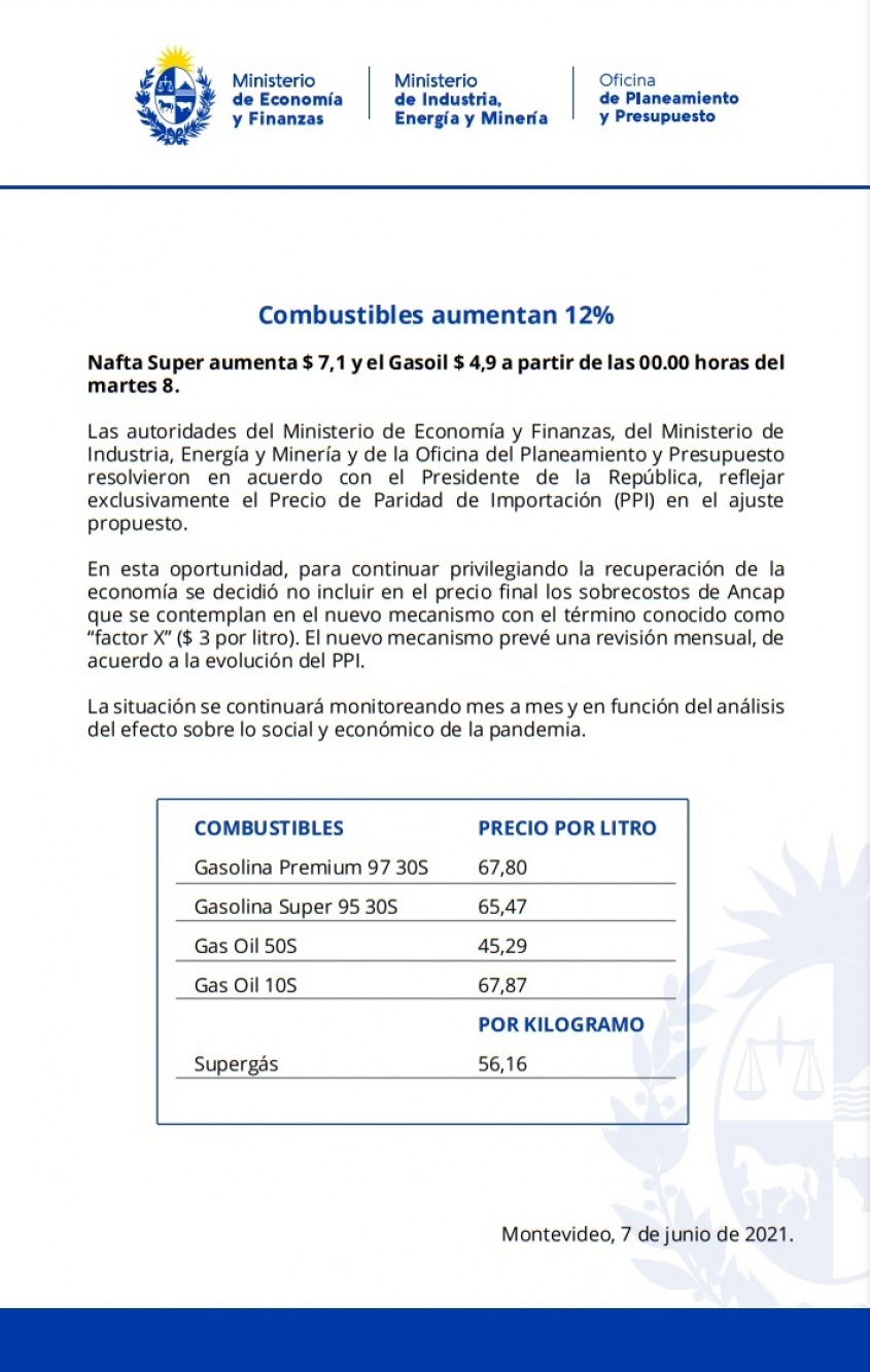 Agregó que con esta decisión ANCAP dejará de percibir 10 millones de dólares, pero que se resolvió “apoyar la reactivación económica y la recuperación del empleo".