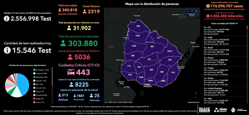 4 pacientes fallecieron en Artigas, 3 en Canelones, Cerro Largo, Colonia y Paysandú, 2 decesos en Rocha, Salto, Soriano y Tacuarembó.