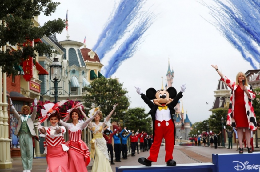A las ocho y media de la mañana, mientras los altavoces ponían bandas sonoras de Disney y unos 100 trabajadores hacían un pasillo en la avenida Main Street bailando y dando palmas, un grupo de unos quince niños discapacitados guiados por un monitor entró al parque inaugurando el acto de reapertura.