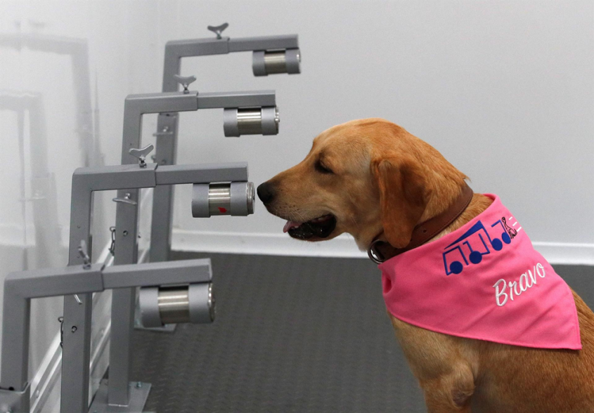 Estos animales entrenados son capaces de inspeccionar al día entre 600 y 1.000 muestras, que pueden olfatear en un aparato especial que impide que se puedan contagiar.