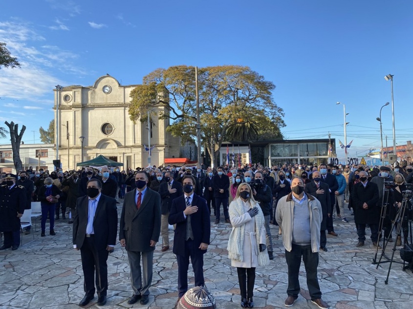 .@luislacallepou y autoridades de gobierno colocan ofrenda floral al pie del monumento al general José Artigas, en la plaza independencia. pic.twitter.com/zDfKx6tM5V
