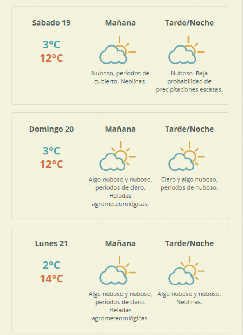 Estarán acompañadas de bajas sensaciones térmicas, en principio, no estarían comprendido dentro de la ola de frío.