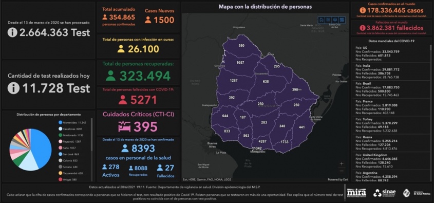 De acuerdo a la información proporcionada por el Ministerio de Salud Pública (MSP), este domingo se llevaron a cabo 11.728 análisis y se detectaron 1.500 nuevos casos de Coronavirus COVID-19.
