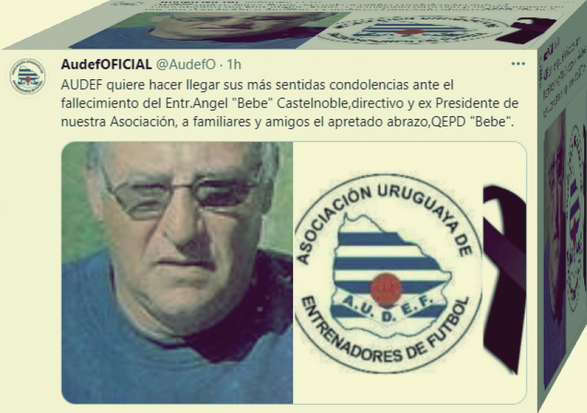 AUDEF también se expresó en Twitter, la agremiación de entrenadores hizo llegar "sus más sentidas condolencias ante el fallecimiento del Entr.Angel "Bebe" Castelnoble,directivo y ex Presidente de nuestra Asociación, a familiares y amigos el apretado abrazo,QEPD "Bebe"