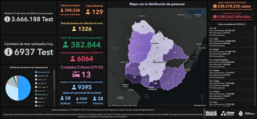 5 en San José, 2 en Lavalleja, así como un nuevo caso en Artigas, Cerro Largo, Maldonado, Paysandú y Salto respectivamente.