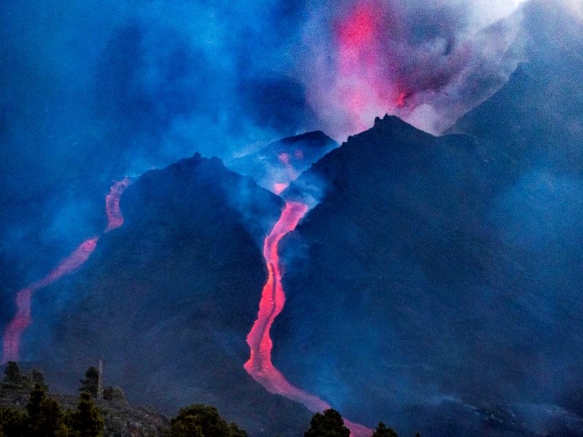 Entretanto, la lava sigue fluyendo por la colada que se abrió al norte de la principal y que hasta el momento se ha llevado por delante un polígono industrial en Los Llanos y ha obligado a evacuar a 800 personas en La Laguna.