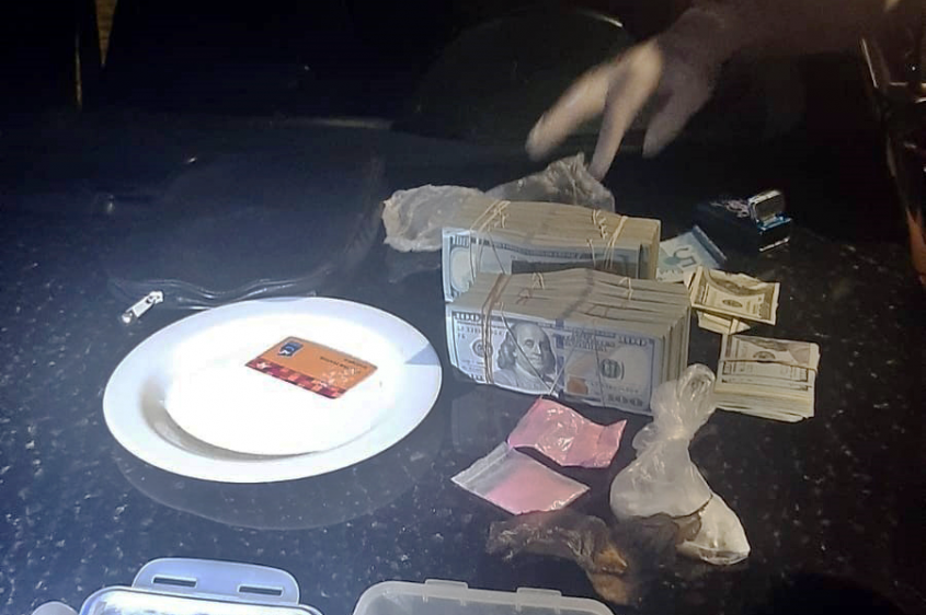 Al inspeccionar el vehículo, con apoyo de efectivos de la Unidad de Investigaciones, se encontraron 103.701 dólares en un morral (que el indagado dijo que corresponderían a la venta de apartamentos y que serían de otra persona a quien se los iba a depositar), 25,6 gramos de cocaína, 4,9 gramos de éxtasis, 9 gramos de sustancia que dio positiva a la presencia de anfetamina/metanfetamina y un plato con restos de cocaína, todo lo que fue incautado junto al vehículo y el celular del implicado.