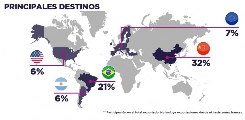 China fue nuevamente el principal socio comercial de Uruguay en 2021, representando el 28% de las exportaciones de bienes, con US$ 3.277 millones exportados.
