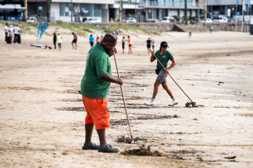 Personal de limpieza de la Intendencia de Montevideo, participantes del Plan Laboral ABC e integrantes de diversas organizaciones sociales realizaron tareas de recolección de residuos de forma manual y con maquinaria. En total trabajaron unas 27 personas entre las playas del Este y Oeste de la ciudad.