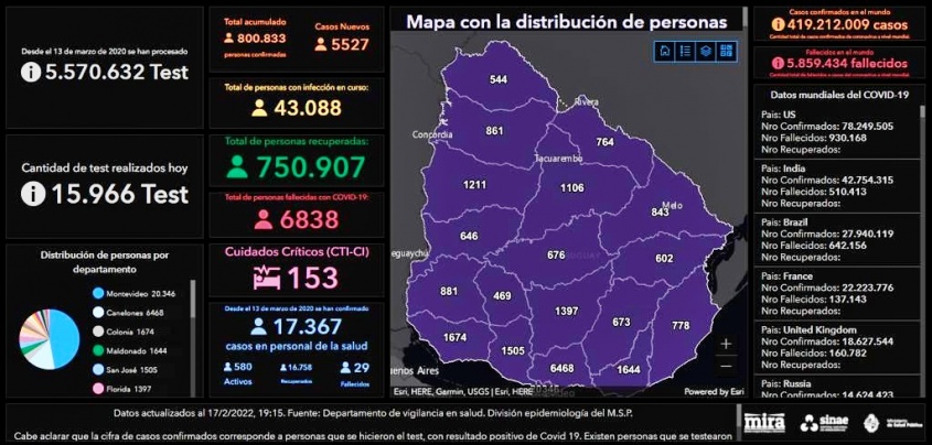 También descendió el número de personas cursando la enfermedad que ahora son 43 mil 88. De ese total, 153 permanecen internadas en CTI.