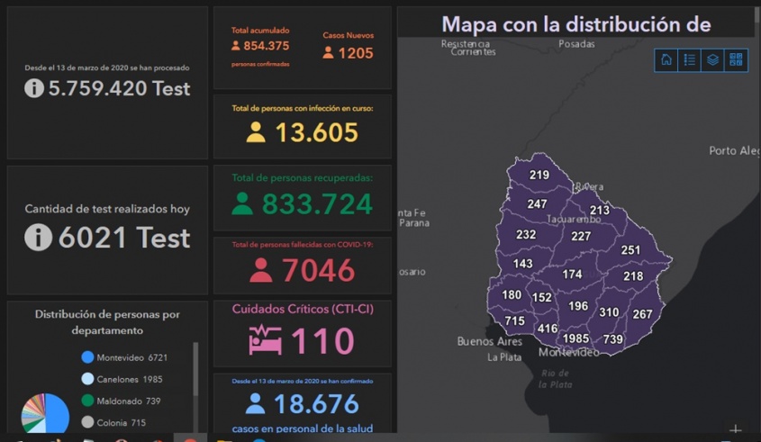 Al día de hoy todos los departamentos registran casos activos, informó el Sistema Nacional de Emergencias (Sinae).