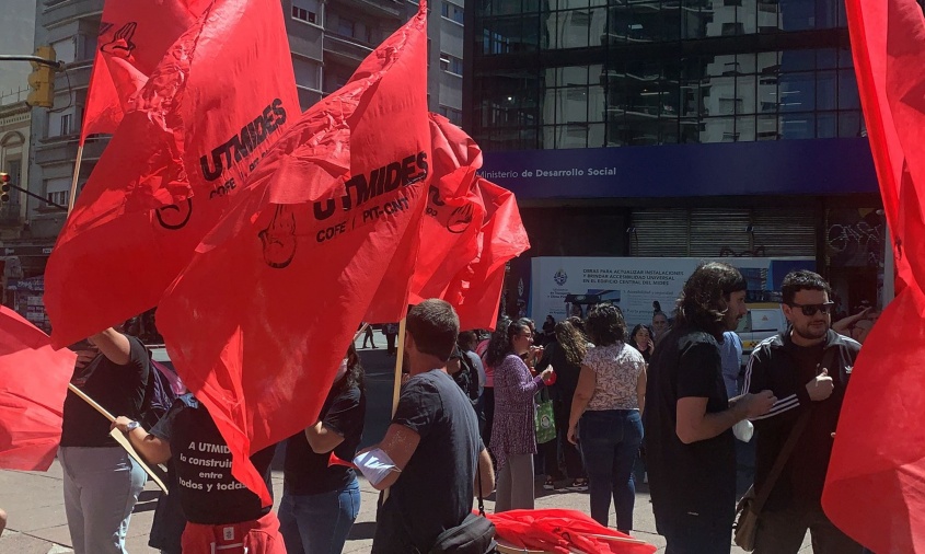 El dirigente participó en la puerta del MIDES de una movilización de los trabajadores de Cofe y su filial en el ministerio, en reclamo del pago en fecha de sus haberes