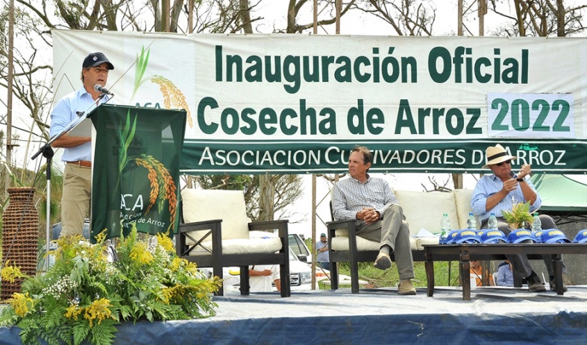 El presidente de la República, Luis Lacalle Pou, participó, este viernes 18, de la inauguración de la cosecha del arroz en un predio ubicado en paraje Cañada Grande, en Cerro Largo.