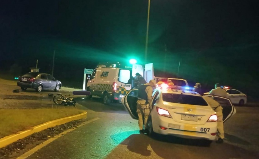 A las 5:30 de la madrugada se registró un siniestro de tránsito entre una moto que circulaba de sur a norte por ruta 5 y un auto que pretendía cruzar dicha ruta, desde la ruta 102.