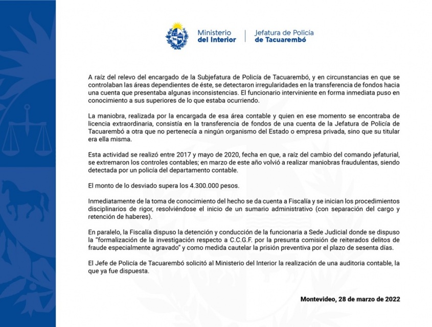 En declaraciones a radio Monte Carlo, Heber dijo que “la actitud de la policía de autodepurarse (denunciando este tipo de hechos) es algo destacable” y agregó que ahora se verá la manera para poder recuperar el dinero hurtado.