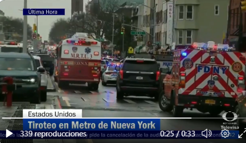 El diario The New York times reporta que varias personas recibieron disparos en una plataforma de metro en el distrito de Brooklyn y que hay humo en el interior, de acuerdo con fuentes policiales.
