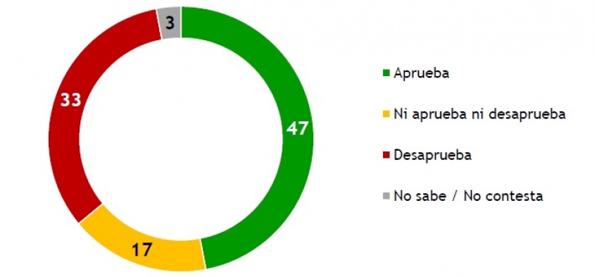 El saldo neto actual es estrictamente el más bajo en lo que va del período de gobierno, aunque ya se habían registrado iguales niveles de aprobación (47% en julio pasado) y de desaprobación (33% en setiembre).