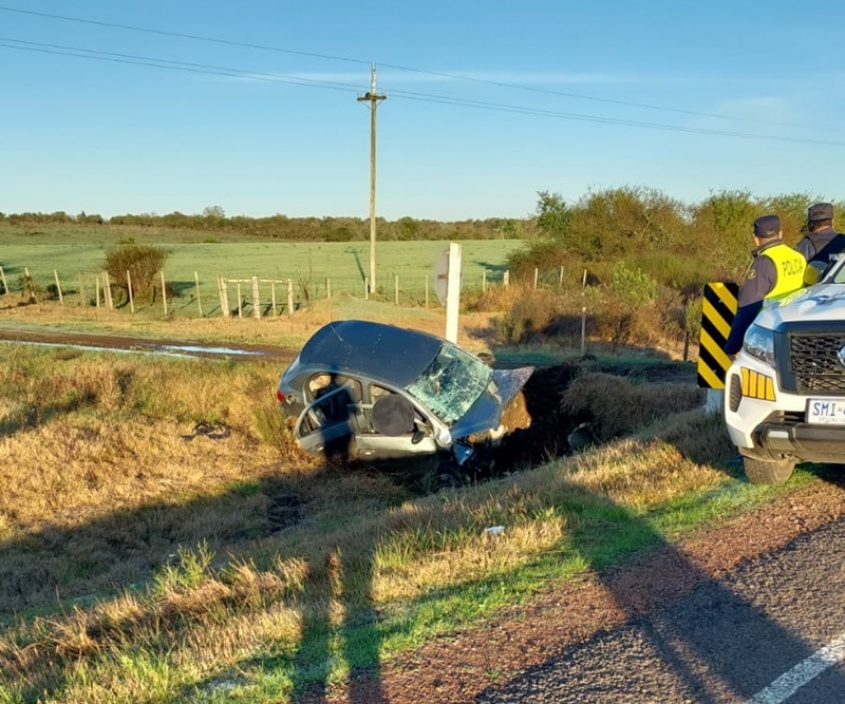 El hecho ocurrió cuando un automóvil con dos ocupantes, que circulaba por ruta 26 a la altura del kilómetro 311 en Tacuarembó, despista impactando contra una alcantarilla quedando fuera de ruta.