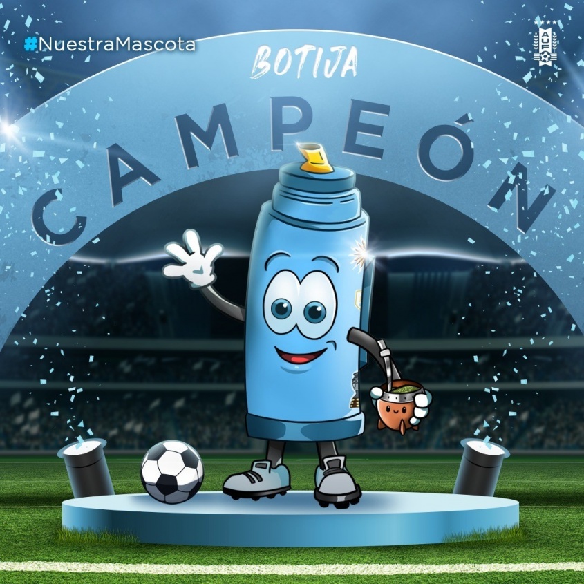 Botija, un termo celeste que tiene pegotines, ojos, boca, brazos, piernas y un mate en la mano, acompañará a las selecciones uruguayas a nivel masculino y femenino en todas las disciplinas de la AUF: fútbol 11, fútbol sala y fútbol playa.