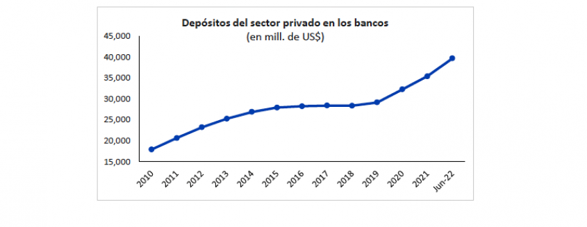 En el primer semestre de 2022 los agentes privados depositaron unos US$ 4.107 millones en los bancos locales. Este crecimiento fue considerablemente más rápido que el del primer semestre de 2021, cuando los depósitos aumentaron US$ 2.651 millones.