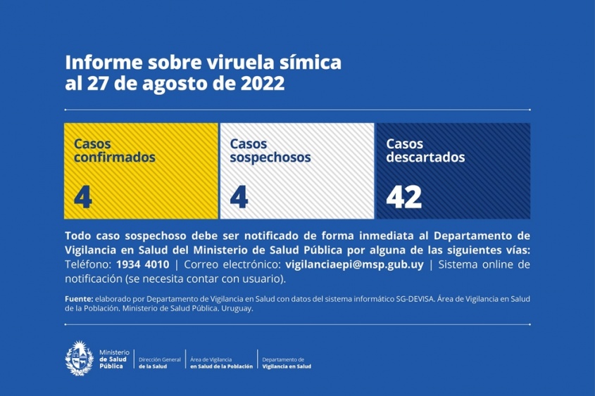 El ministerio de Salud Pública informó que se mantienen en condición de casos sospechoso otros cuatro casos.
