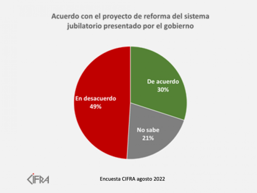 A su vez, el 38% de los mayores de 60 años está a favor y el 37% está en contra de la reforma, y si se mide por nivel de ingresos, quienes están más en contra son los sectores de ingresos medios, observándose una mayoría relativa a favor dentro de quienes tienen ingresos más altos, según el trabajo difundido.