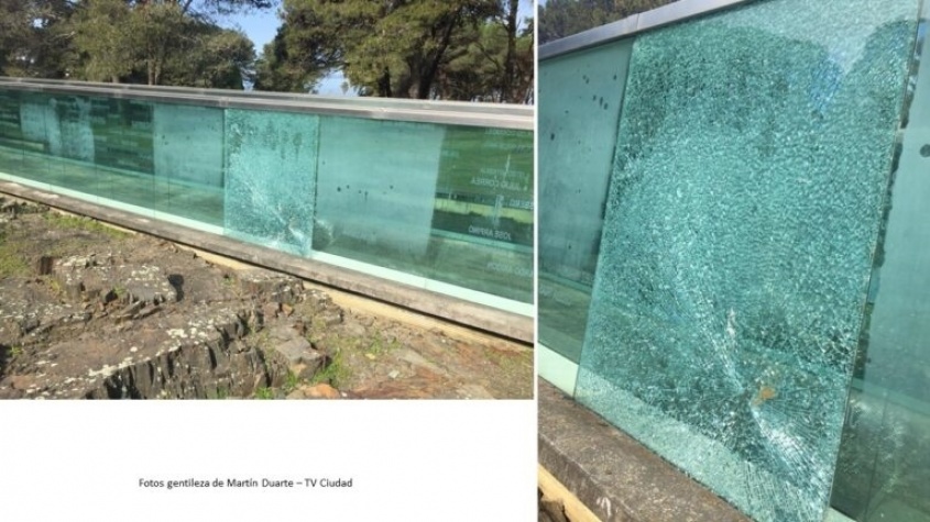 Según registros fotográficos los vidrios del Memorial a los Desaparecidos, monumento ubicado en el parque Vaz Ferreira, están astillados.