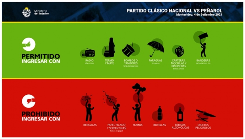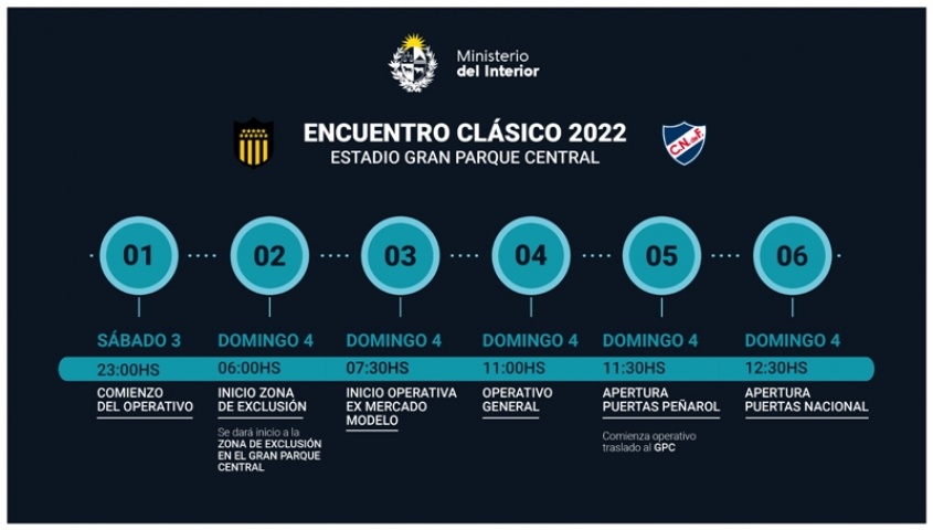 El partido clásico Nacional vs Peñarol del domingo en el GPC tendrá un operativo que involucrará a 1.073 efectivos y comenzará el sábado 3 a las 23 horas, informó el Ministerio del Interior.