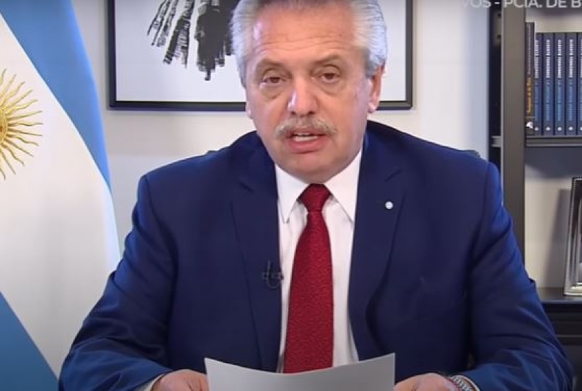 Foto: Captura de pantalla video de Alberto Fernández en cadena nacional. télam