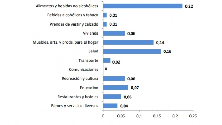 Las principales incidencias, en la variación del índice el mes pasado, provienen de alimentos, vivienda, muebles, salud, recreación y educación.