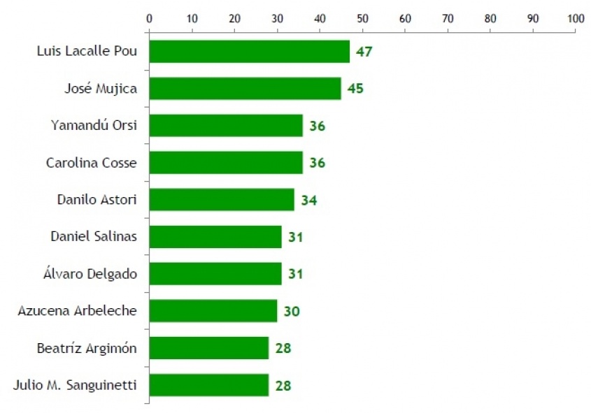 En cuanto a las antipatías, o los más rechazados, la lista es encabezada por el senador nacionalista Juan Sartori, con un 59%, seguido por el líder cabildante Guido Manini Ríos, con un 52%. A su vez, Mujica es conocido por el 100% de la población; Lacalle Pou por el 99%; Sanguinetti por el 96%; Manini por el 95%; Bordaberry por el 94%; Sartori por el 93%; Cosse por el 92%; Astori por el 91%; Argimón por el 89%; y Talvi por el 87%.
