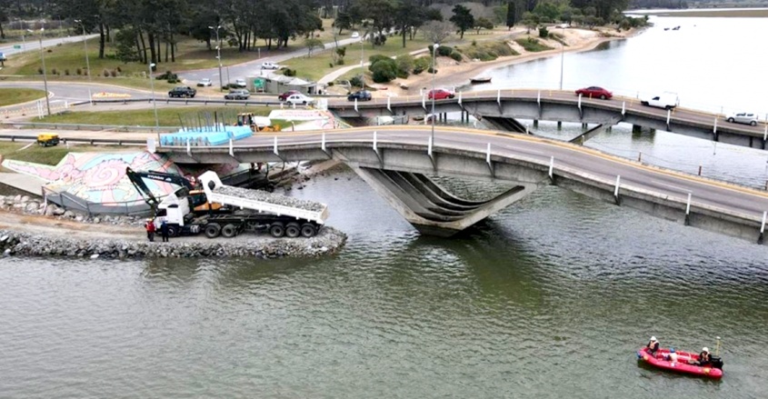 Además se utilizarán unos 200 camiones de piedra que para construir cuatro diques, desde los cuales se instalarán pilares para apuntalar el puente.