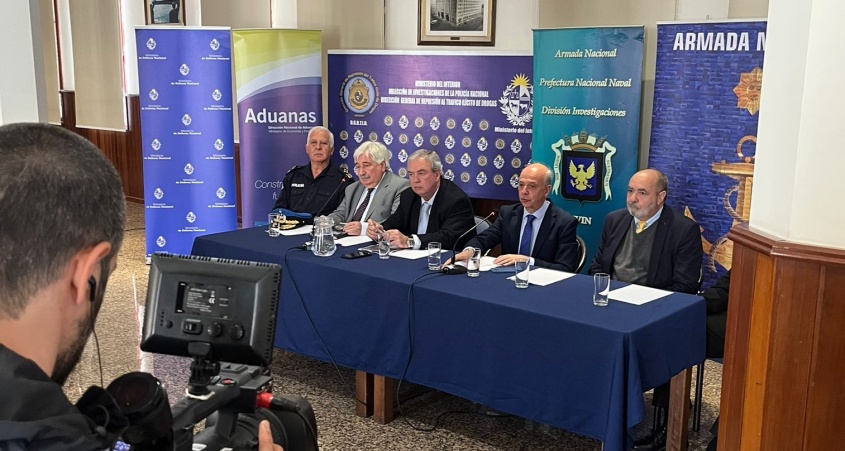 Este lunes se realizó una conferencia de prensa conjunta en el Comando de la Armada por los ministros de Interior y Defensa, Luis Alberto Heber y Javier García, junto al fiscal de Corte, Juan Gómez, el director de Aduanas, Jaime Borgiani.