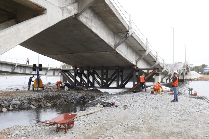 La intendente (I) de Maldonado Adriana Graziuso recorrió las obras para seguir de cerca las tareas que se están desarrollando en el puente.