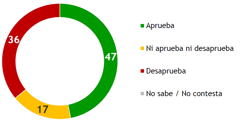 El 47% de los uruguayos aprueba la gestión del presidente Luis Lacalle Pou, el 36% la desaprueba y el 17% ni la aprueba ni la desaprueba, según la última encuesta de Equipos Consultores, divulgada en Subrayado.