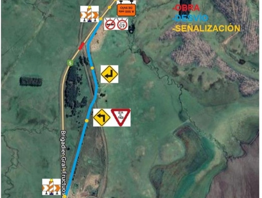 Por obras de ensanchamiento en Ruta 5, habrá un desvío de un kilómetro aproximadamente de forma permanente en ambos sentidos, hasta mediados de Diciembre.