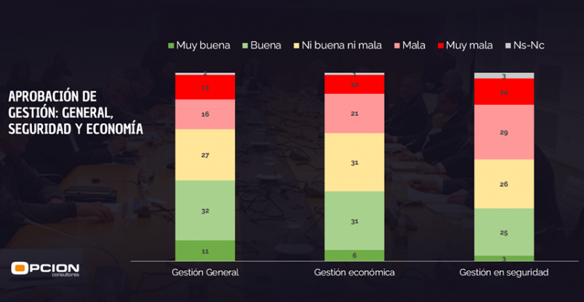 Por lo visto, puede concluirse que los menores niveles generales de aprobación en seguridad que en economía se deben fundamentalmente a diferencias evaluativas dentro del electorado oficialista. En cambio, los mayores niveles de desaprobación en seguridad se explican por diferencias existentes al interior de ambos electorados, oficialista y opositor, siendo superior en ambos tipos de votantes el nivel de desaprobación de la gestión en seguridad. Como nota final, aunque la mirada de la gestión en seguridad es uno de los principales desafíos actuales de posicionamiento del gobierno ante la opinión pública, su capital político sigue siendo ampliamente superior al poseído por la pasada administración (segundo gobierno de Tabaré Vazquez), donde los niveles de desaprobación en seguridad se mantuvieron sistemáticamente por encima del 65% durante casi todo el ciclo de gobierno, finaliza el trabajo de Opción Consultores presentado en Telenoche.